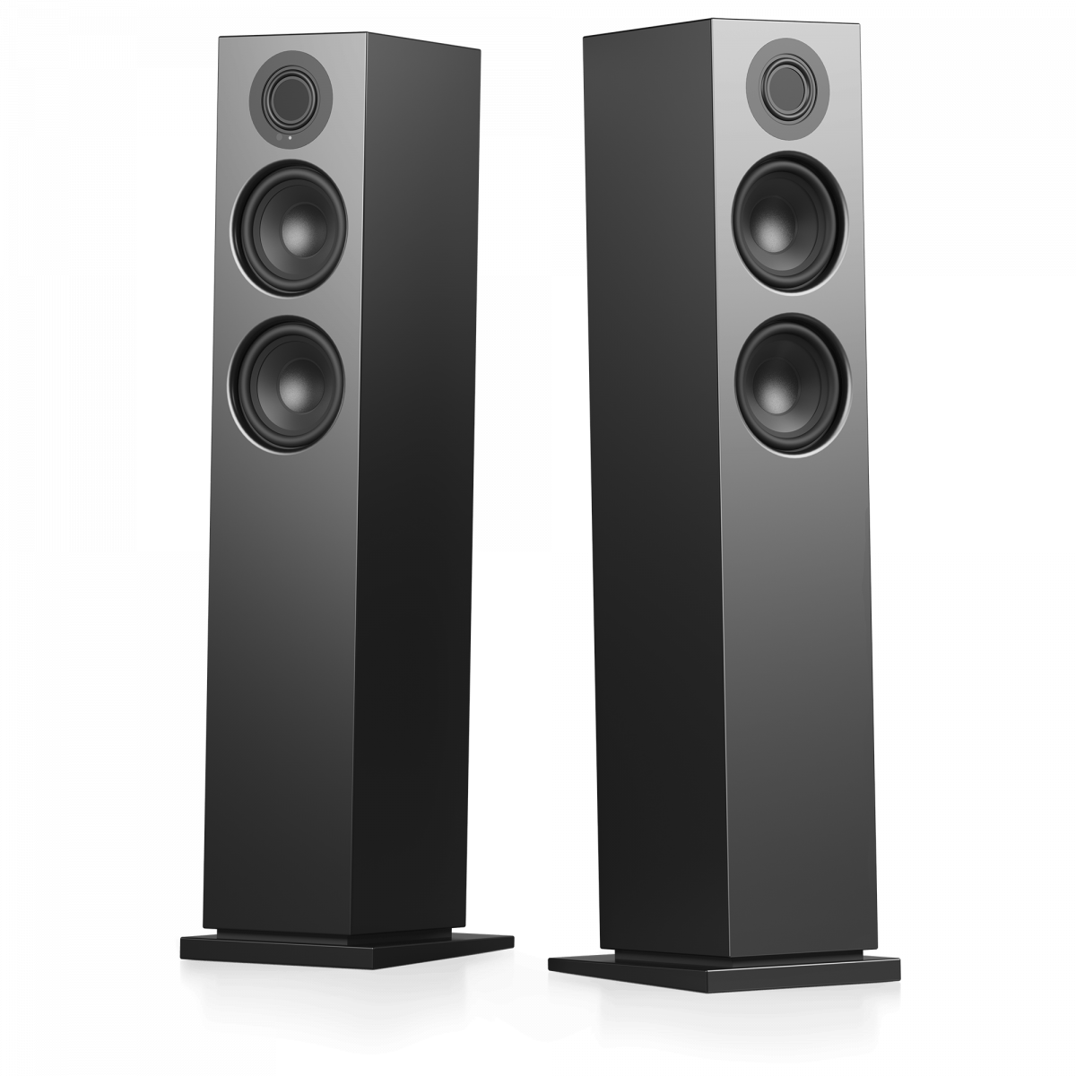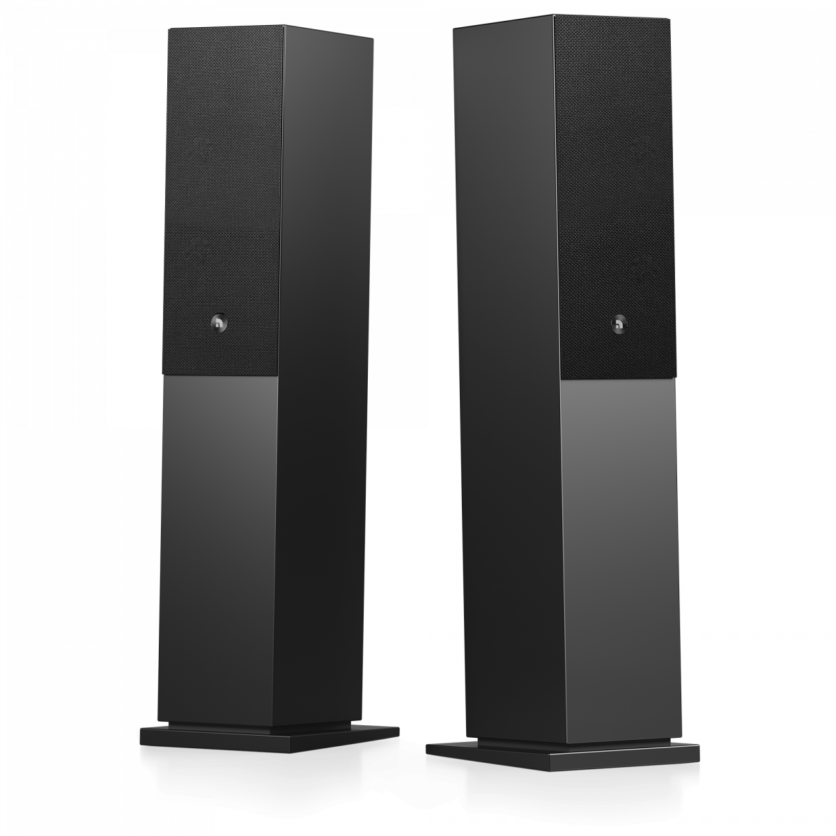 Das MDF-Gehäuse ist in sanftem, satiniertem Weiß oder Schwarz lackiert und fügt sich ganz natürlich in dein Zuhause ein. Die Stofffronten sind mit Magneten befestigt.