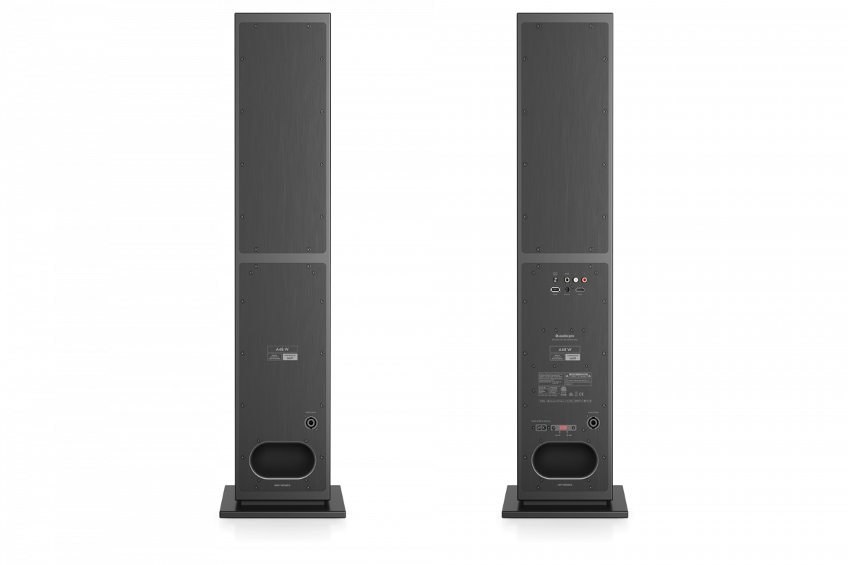 Aufgrund seiner Größe liefert der A48 W ein noch größeres Klangerlebnis als sein Geschwistermodell A38 W. Das größere Gehäuse mit seinen beiden leistungsfähigeren Verstärkern sorgt für einen zusätzlichen Tiefbass. Mit seiner kleinen Grundfläche passt er gut auf den Boden neben dem Fernseher.