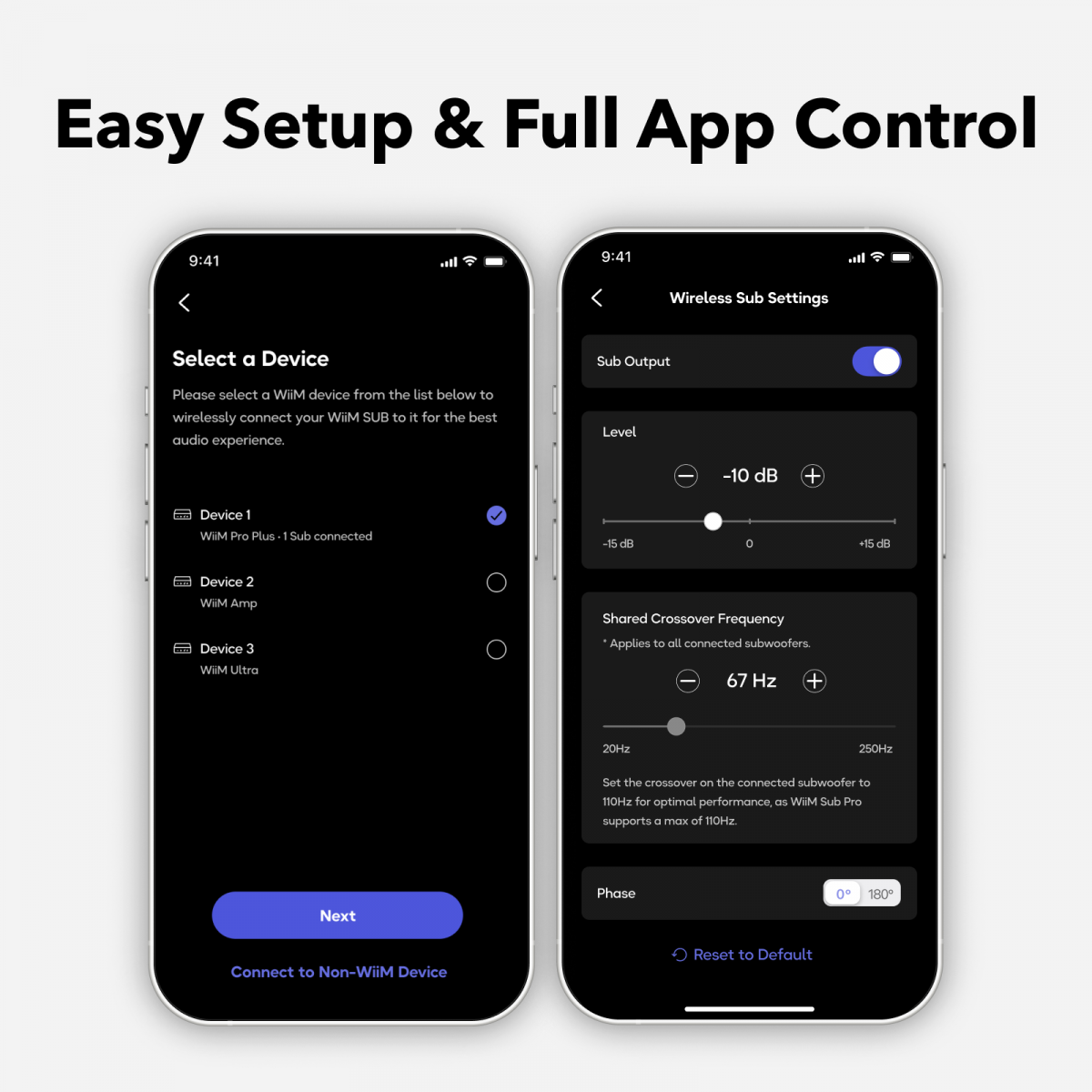 Satter, verzerrungsfreier Bass mit weniger als 1 % THD+N Raumangepasster Klang – RoomFit™ Auto-Kalibrierung für präzise Anpassung an Akustik und Hörposition Modernste Funkstandards – Wi-Fi 6E und Bluetooth 5.3 LE Audio für stabile, latenzarme Verbindung Individuelle Steuerung – umfassende Klangregelung über die WiiM Home App (EQ, Crossover, Phase, Latenz) Elegantes Design – vibrationsfreies Gehäuse mit optimierter Akustik und moderner Ästhetik Vielseitige Integration – nahtloses Zusammenspiel mit WiiM-Geräten oder per Subwoofer-Ausgang mit Fremdsystemen Zukunftssicher – regelmäßige Firmware-Updates mit neuen Funktionen und Verbesserungen Automatische und manuelle Klangregelung (10-Band Parametric EQ) Umfassendes Bass-Management mit einstellbarer Übergangsfrequenz, Pegel, Phase und Latenz Robustes Gehäuse für resonanzfreie Wiedergabe auch bei hoher Lautstärke App-Steuerung für iOS und Android LED-Statusanzeige (RGBW)