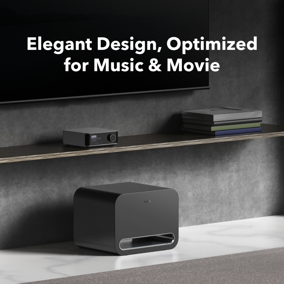 Der WiiM Sub Pro erweitert jedes Musik- und Heimkino-System um die Dimension, die man nicht nur hört, sondern auch spürt. Mit seinem kraftvollen Tieftonbereich bis hinunter zu 25 Hz verleiht er Filmen, Spielen und Musik eine neue Intensität. Dank KI-gestützter Raumkalibrierung passt sich der Subwoofer präzise an die akustischen Gegebenheiten des Wohnraums an – für Bass, der genau dort wirkt, wo er hingehört. Ob kabellos über Wi-Fi 6E oder Bluetooth 5.3 mit LE Audio oder klassisch per Kabel: Der Sub Pro verbindet sich stabil und latenzarm mit allen gängigen Geräten. Über die WiiM Home App lassen sich Feinabstimmungen wie EQ, Crossover und Phase einfach steuern. Die hochwertige Gehäusekonstruktion sorgt dafür, dass die enorme Leistung jederzeit sauber und verzerrungsfrei bleibt – ganz gleich, ob leise Hintergrundmusik oder ein actionreicher Filmsoundtrack läuft.