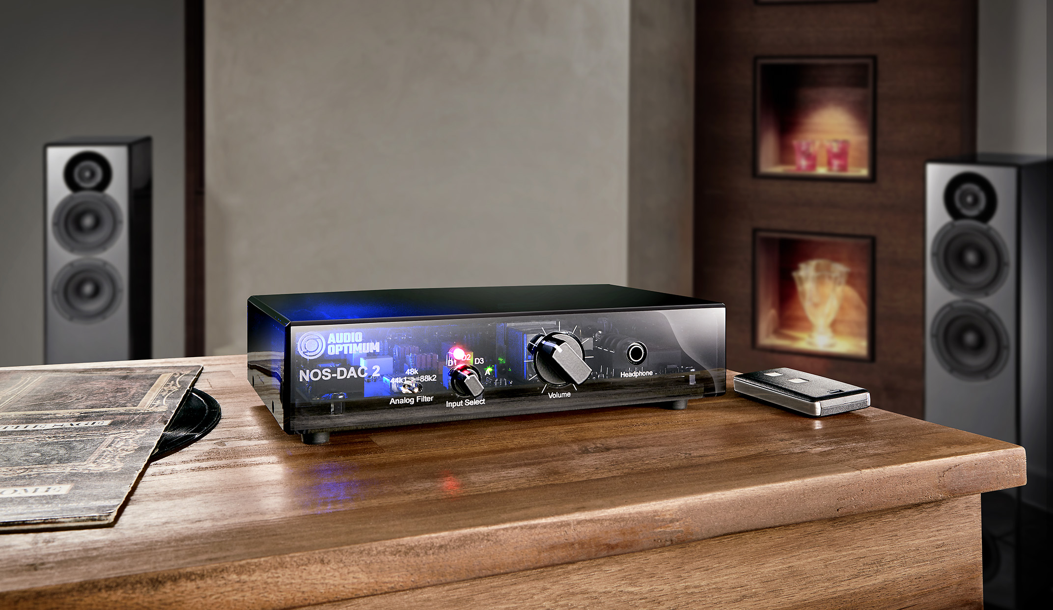 Als eine Kombination aus Non Oversampling DA-Wandler und Vorverstärker mit symmetrischem Kabeltreiber und fernsteuerbarem Lautstärkesteller ist der Audio Optimum NOS-DAC 2 die ideale Ergänzung zu unseren Aktivlautsprechern, um diese auf gleich hohem Niveau anzusteuern. Zusätzlich steht ein Kopfhörer-Ausgang höchster Qualität zur Verfügung.